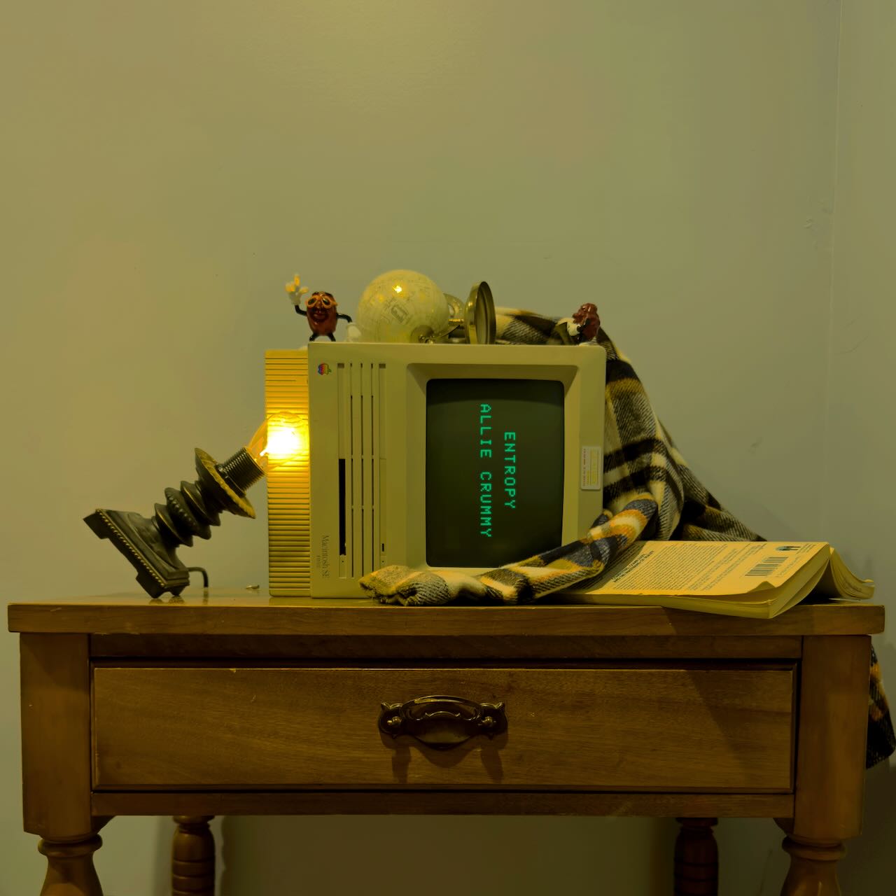 I released a song in January called “Complexity,” and it is about how the computer age has made life increasingly complex (I wrote more about that on my Substack, https://substack.com/@alliecrummy); it felt so appropriate to use a 1988 Macintosh computer in the artwork for that song, because to me, that specific computer represents the beginning of this extra-complicated age. Then when I was working on “Entropy,” I wanted to tie the two songs together, partly because they share a similar theme, and partly because they are both stylistic departures from the rest of my music. I wanted to photograph the same scene, but staged to look like a post-entropy state. My husband snapped the photos for each on his iPhone and then edited them in Photoshop (he did such a great job!).